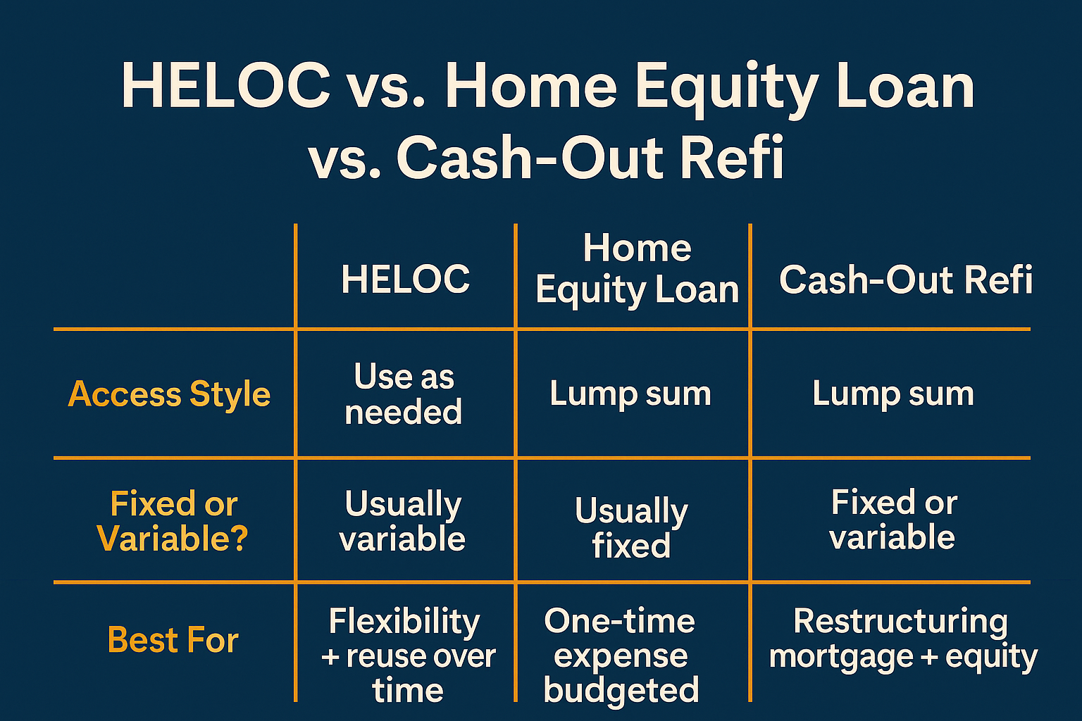 - The differences between HELOCs, home equity loans, and cash-out refinancing for accessing equity (Federal Reserve consumer credit information)