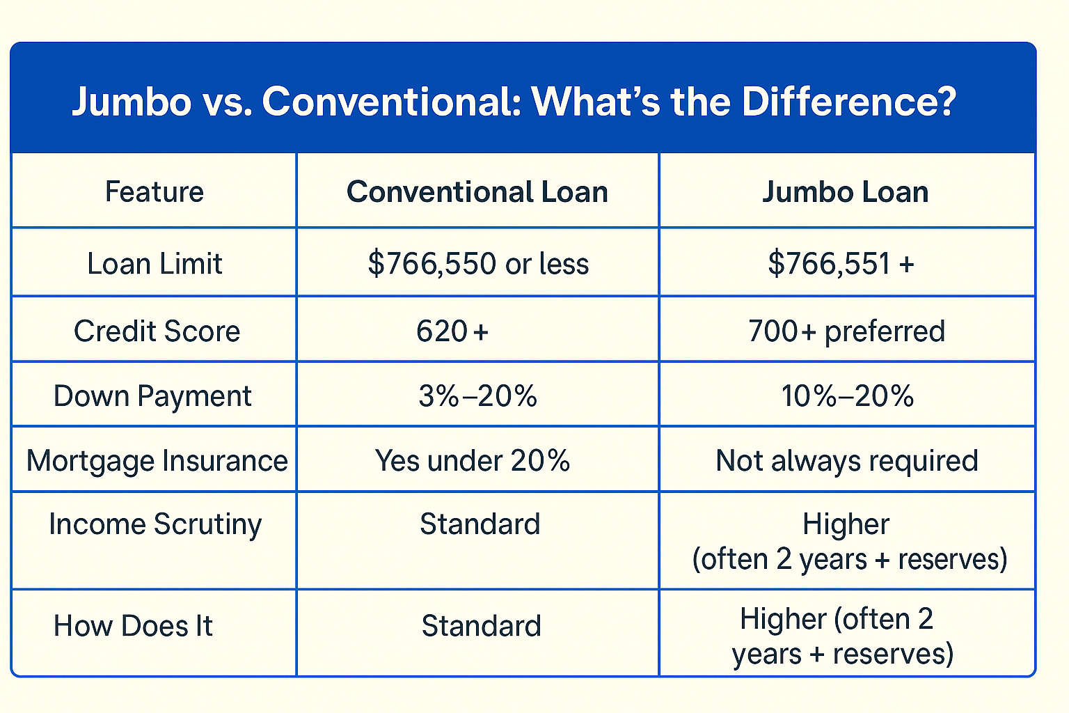 - How jumbo loans differ from conforming mortgages and why loan limits create the need for specialized high-balance financing structures