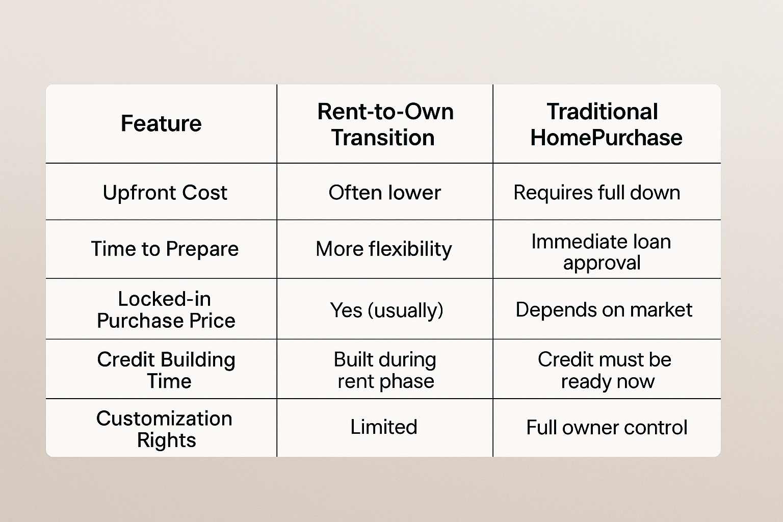 A rent-to-own (or lease-option) agreement lets you rent a property with the right to buy it later—typically within 1 to 3 years. Part of your monthly rent may go toward the future purchase, and the sale price is often locked in advance.